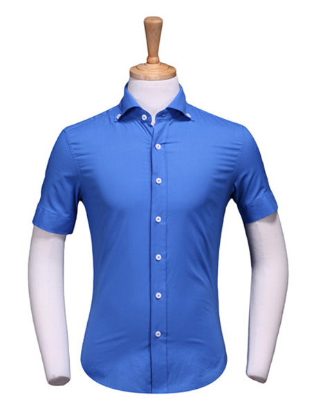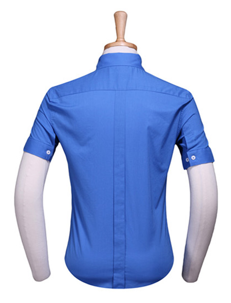 重庆蓝色衬衣制作,定制短袖男衬衫