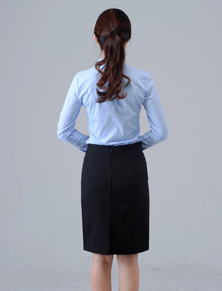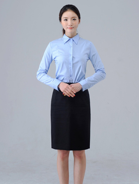 重庆淡蓝长袖女衬衫定做,公司女衬衣量身订制