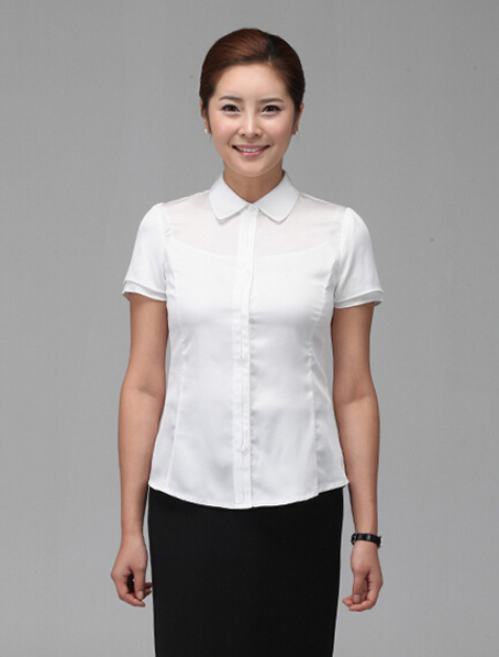欧迈服饰专业的重庆办公室衬衣工服订做厂家为客户提供女士衬衫量身定制夏季短袖衬衫款式图片可以根据客户需求订做女士衬衫企业销售职员女士衬衫值得选择.