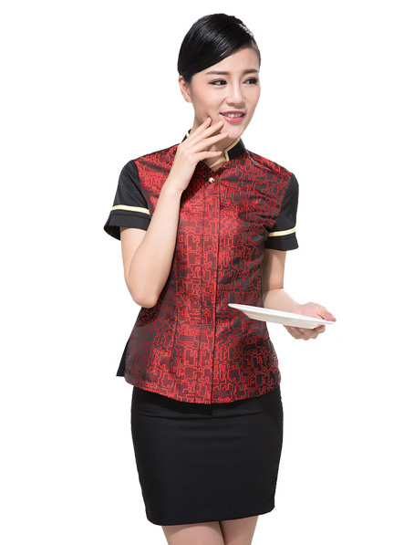 重庆定做中式餐饮工作服,订做立领酒店服务员制服公司