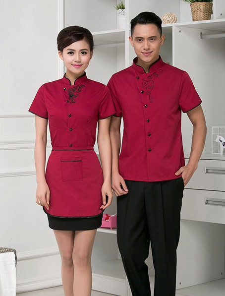 重庆定做酒店制服,夏季短袖酒店工作服订做