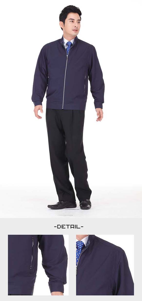1 门襟采用暗扣和拉链双层闭合方式,工艺精湛考究。做工精致,更添动感时尚。2 领口线条圆润,儒雅含蓄,领子挺而不硬,裁剪合理,高度适中