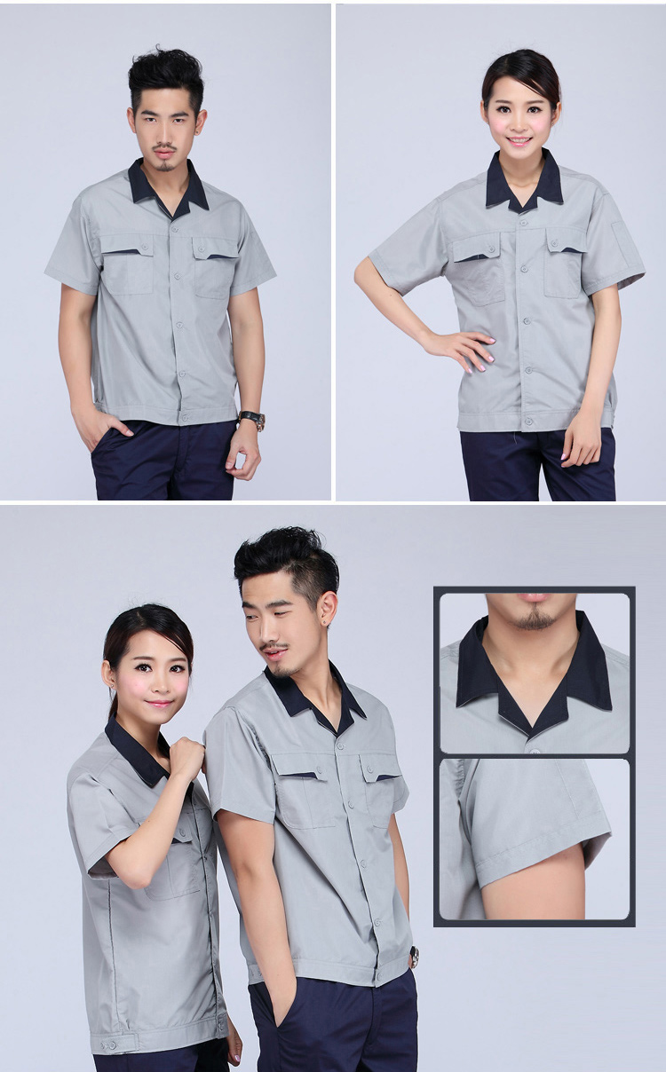 新款男士夏季短袖工作服上装 劳保服 汽修工作服