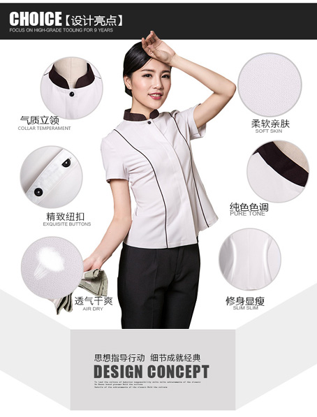 欧迈服饰是一家经验丰富的品牌保洁服订做厂家,重庆定做高档女款短袖服务员工服,有着非常丰富的订制保洁服经验,女式保洁服定做版型好,保洁服制造工艺全国领先.